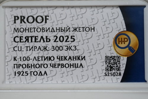 Монета жетон медь Червонец Сеятель 2025 г., к 100-летию Червонца 1925г.,в слабе ННР PROOF!!!