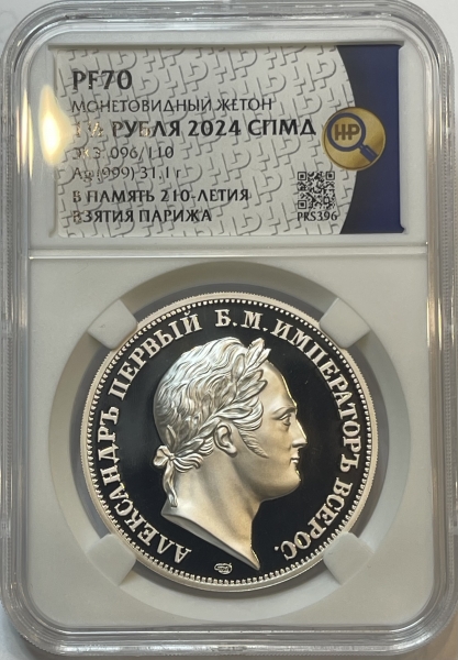В рамках проекта Монетное дело Санкт-Петербургский монетный двор отчеканил памятный монетовидный жетон, выпуск которого приурочен к 210-летию вступления русских войск в Париж.