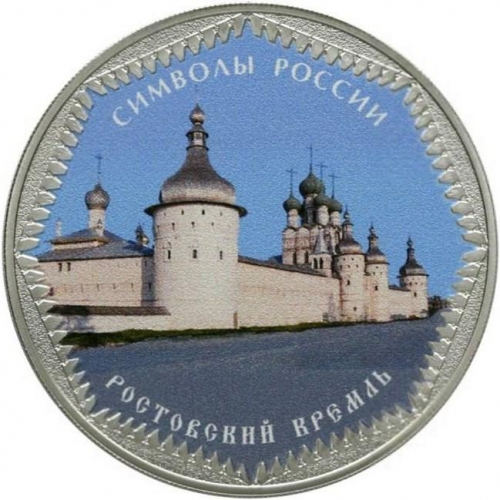 9) в центре диска в картуше – цветное изображение Ростовского кремля, надписи вдоль канта – вверху: "СИМВОЛЫ РОССИИ", внизу: "РОСТОВСКИЙ КРЕМЛЬ".