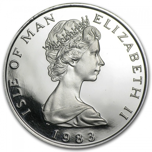 Платиновая монета Острова Мэн «1 нобль» 1987 года выпуска была первой платиновой инвестиционной монетой и чеканилась Монетным двором Побджоя с 1983 по 1989 гг.