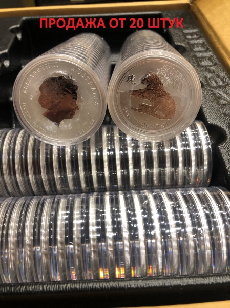 Серебряная монета из серии "Лунный календарь" - год Тигра выпущена Пертским монетным двором в 2010 году. Эти серебряные монеты посвящены животному-символу 2010 года – тигру. Серебряная инвестиционная монета Лунар II Тигр имеет пробу 0,999 долей чистого серебра. Тираж монеты ограничен.