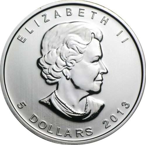 Серебряная унцовая монета бизон, 5 долларов Канада. 2013г.