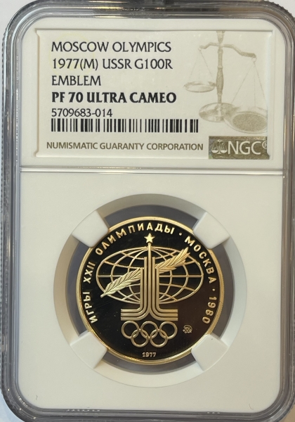 Слева и сверху вдоль канта слова «ИГРЫ XXII ОЛИМПИАДЫ», справа разделенные точкой слово «МОСКВА» и год проведения XXII Олимпиады «1980», в середине эмблема XXII Олимпийских игр и за ней аллегория спорта и мира в виде земного шара и лежащей перед ним лавровой ветви, ниже справа монограмма монетного двора «ММД», внизу у канта год выпуска монеты «1977».