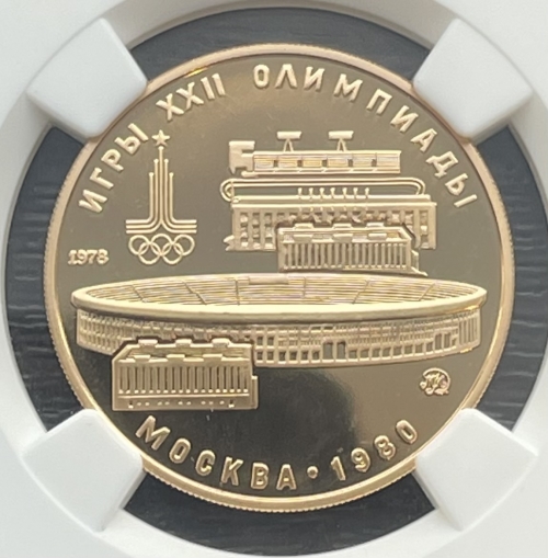 Сверху вдоль канта слова «ИГРЫ XXII ОЛИМПИАДЫ», ниже слева год выпуска монеты «1978» и эмблема XXII Олимпийских игр, в середине строения стадиона им. В.И. Ленина (Лужники), под стадионом справа монограмма монетного двора «ММД», внизу у края монеты разделенные точкой слово «МОСКВА» и год проведения XXII Олимпиады «1980».