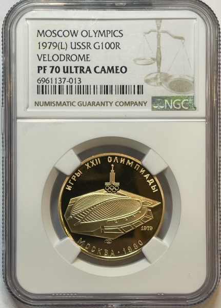 Сверху герб СССР с 15 витками ленты, слева от него буквы «СС», справа «СР», ниже двойная черта, под ней обозначение достоинства монеты цифра «100» и ниже слово «РУБЛЕЙ».