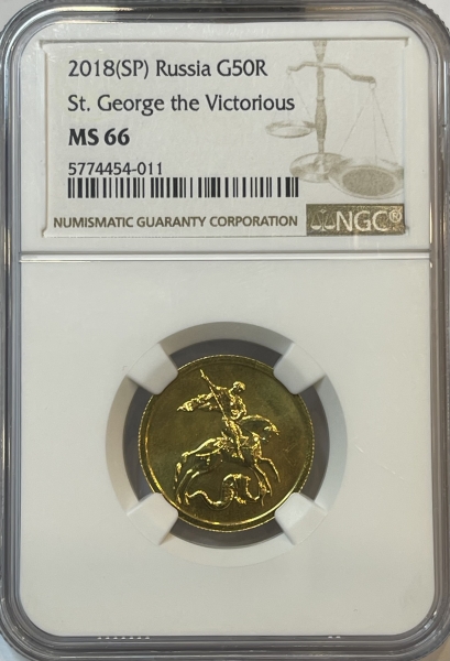 в центре – рельефное изображение Государственного герба Российской Федерации, над ним вдоль канта – надпись полукругом: "РОССИЙСКАЯ ФЕДЕРАЦИЯ", обрамленная с обеих сторон сдвоенными ромбами, внизу под гербом: слева – обозначения драгоценного металла и пробы, справа – содержание химически чистого металла и товарный знак монетного двора, внизу в центре – надпись в три строки: "БАНК РОССИИ", номинал монеты: "50 РУБЛЕЙ", год выпуска: "2018 г.".