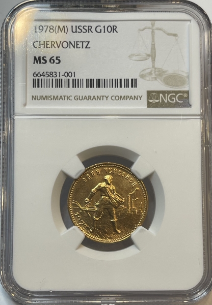 Изображение крестьянина-сеятеля на фоне плуга, восходящего солнца и заводов; по краю монеты точки, вверху надпись - «ОДИН ЧЕРВОНЕЦ», внизу слева — год выпуска - 1978.